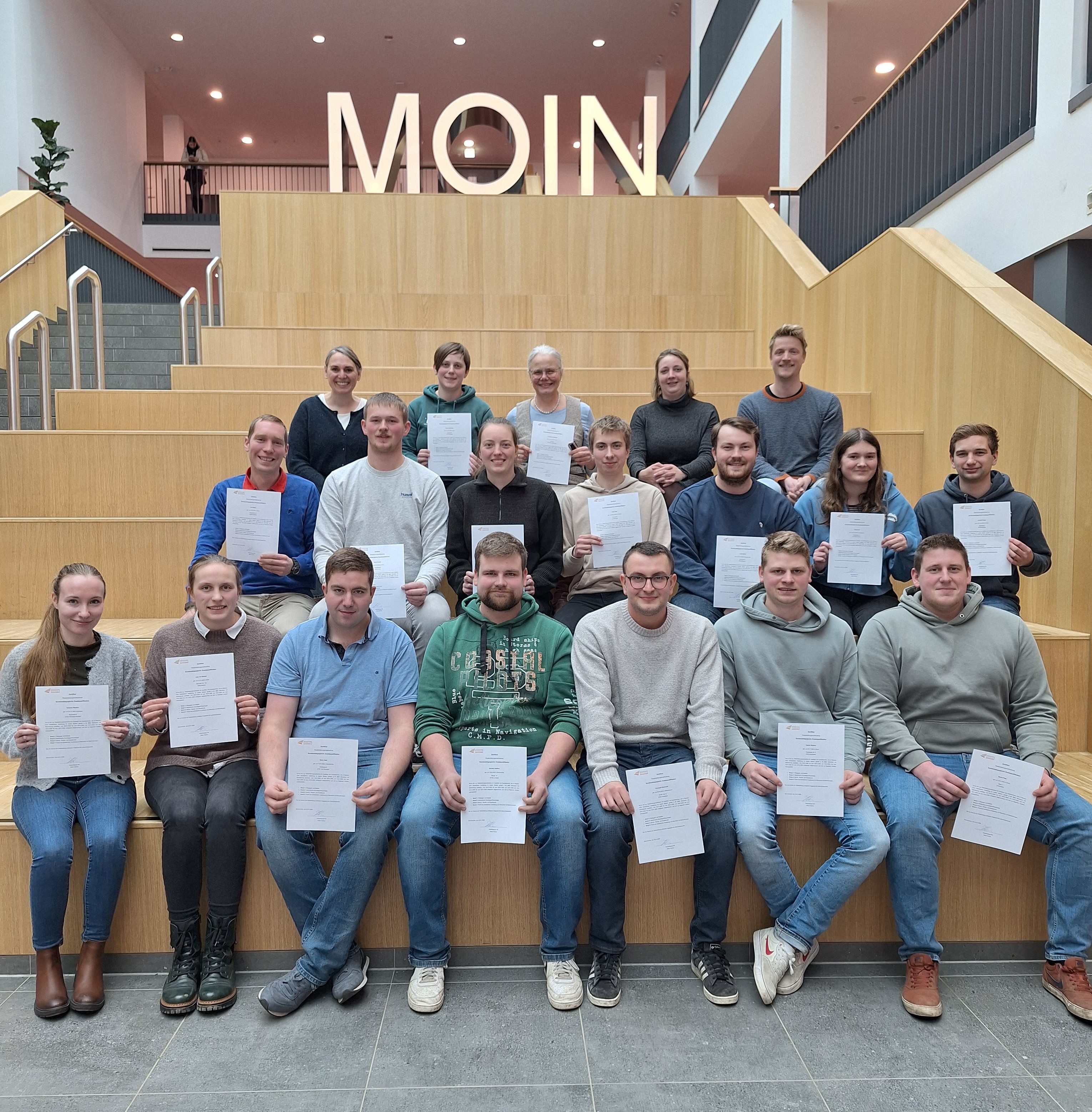 Am Kurs nahmen 17 Personen teil: 14 Schülerinnen und Schüler der Zweijährigen Fachschule für Agrarwirtschaft, zwei externe Landwirte und eine Lehrkraft der BBS. Organisiert wurde das Modul von der Bildungsgangs-Gruppe Agrarwirtschaft unter Leitung von Dorothee Lux gemeinsam mit Malte Holsten. Themen waren unter anderem Pädagogik, Didaktik, Psychologie, medizinische Grundlagen und Sozialhilferecht.